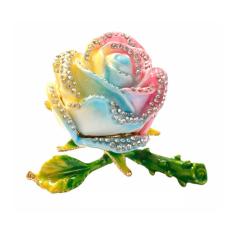 235個のクリスタルの輝きを放つエレガントな薔薇のジュエリーボックスです。クリスタルジュエリーボックスはすべてハンドメイド。ひとつひとつ心を込めて作っています。手のひらに収まるコンパクトサイズのため、置き場所にも困らずプレゼントとして人気があるジュエリーボックスです。バラの花言葉は「愛」「美」。また色によっても意味が異なります。伝えたいメッセージに合わせてカラーをお選びいただくのも素敵です。(ピンク:しとやか・上品・感銘、レインボー:奇跡・無限の可能性、レッド:愛情・美・情熱・熱烈な恋)花の中でもバラは少し特別な存在。クリスタルがキラキラ輝くバラは、特別な人へのプレゼントにぴったりです。