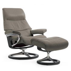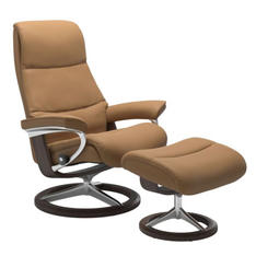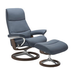 書斎にぴったりな重厚感のあるデザイン。中央に溝を設けたユニークなクッションデザインで体をしっかり支えてくれるリクライニングチェアです。威厳ある佇まいなのにその心地良さはまさに「マジック」。オットマン付きです。