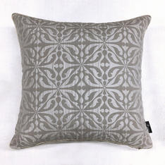 モダンで新しい、フレンチシックなエレガンススタイルのご提案。オーナメント調の柄をトレンド性の高い凸凹感のある織物で表現する事により、大人っぽい雰囲気に仕上げています。柄はシンプルに見えますが、地と柄の部分で光沢感の差が有り、見る角度によって色の見え方が変わり、複雑な質感に仕上がっています。凸凹部分は先染めの膨れ織りで表現されており、背当クッションに中身を入れた際に陰影がより美しく見えます。
