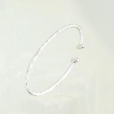 叩いて槌目加工に仕立てることで、ハンドメイトらしいクラフト感を感じられます。シンプルなデザインがコーディネートに合わせやすく、お手持ちのバングルやブレスレットなどと合わせて重ね付けもおすすめです。