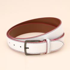 帯(ベルトの本体)の色とコバ(側面)の色、ステッチの色に変化を付けたラコステらしいカジュアルデザイン。ラコステの象徴ワニのマークがワンポイントで入っています。