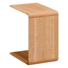 削り出しの面形状と、直線・曲線のバランスを考慮しデザインされたサイドテーブル。アクティブなシーンで使うサイドテーブルというより、読みかけの本や、眼鏡を置いたり、スマートフォンなどを充電したり、人が休息をするのと同じように、置かれる道具も休息し、次に使われることを待機するステーション的なテーブルをコンセプトとしています。コンセントを天板ではなく台座に配置することで、アダプターや配線をまとめるスペースを確保した設計です。天板の形状も独特で、スクエア天板が持つ広い有効面積と、ラウンド天板がもつどの位置からでも同じ形状と、見た目の柔らかさの両方の要素と機能を兼ねた楕円形(オーバル)になっています。