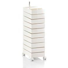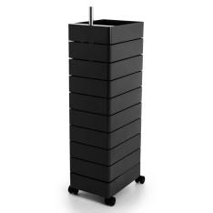 ボビーワゴンは、キャスター付きの本体を回転させることで側面4面すべてを効率的に使える、デザイン性と機能性に優れた収納家具です。180°回転するトレイや、ボトル類の保管に適した奥行きのあるポケットなど、機能性に富んだ収納スペースが随所に工夫されています。ABS樹脂製で汚れの拭き取りも簡単。3段タイプは、デスクサイドやキッチンでご使用いただくのに最適。一般的なデスクやテーブルとほぼ同じ高さなので、作業台としてもご使用いただけます。イタリアンデザインの黄金期1960年代を彗星のごとく駆け抜け、数多くのプロダクトを残して41歳の若さでこの世を去った天才デザイナー ジョエ・コロンボが1970年にデザインし、その後のロングセラー商品として50年以上経った現在でも世界中で愛用されています。SMAU賞(イタリア)を受賞したほか、MoMAのパーマネントコレクションにも選定されているプロダクトデザインの名作です。