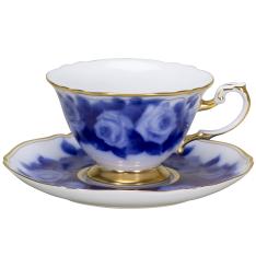 幻の薔薇「ブルーローズ」。独自の技法で表現される、やわらかく、深みのある紺青が特徴です。大きな一輪の薔薇が描かれた日常の食卓にも馴染みの良いデザインのティーカップは、ご自宅用はもちろん、贈りものにもおすすめです。