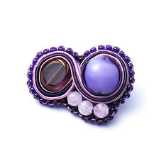 アメシストとダイヤモンドの豪華饗宴リングです。紫は古来、高貴な色とされていて、身分の高い人しか身に着けることができませんでした。日本では古希や喜寿のお祝いとして紫のものを贈るのが習わしとなっています。
