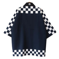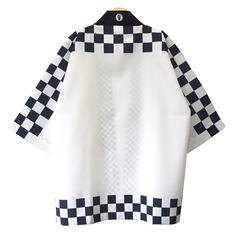 人気市松柄をバランスよく配した法被です。シンプルなデザインで様々な場面での着用をお楽しみいただけます。「Happi.Tokyo」オリジナルデザインです。