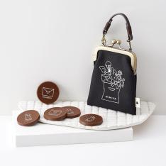 すっかりお馴染みになった京都のチョコレート屋さんと京都のがま口専門店とタッグを組んだ三三屋オリジナルシリーズは、昨年好評をいただいた小物を収納し、バッグチャームにもなる魅力的ながま口ミニケースに新色のチョコレートカラーを加えて登場。ウサギとラブレターがプリントされたショコラがセットで可愛さマックス。※「ありがとう」のメッセージ入り、オリジナル小袋(紙製)をお付けします。