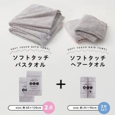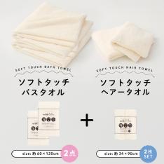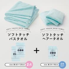 ソフトタッチ ヘアータオル2枚&バスタオル2枚セット