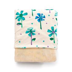 花柄の綿素材と無地の起毛素材を組み合わせたオールシーズンタイプのキルトマルチカバー。ソファーカバー、ベットカバー、ホットカーペットカバーなど様々な用途でお使いいただけます。コンパクトにたためるので収納もしやすい商品です。