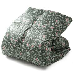 良質なダックダウンのみを採取し、研磨・洗浄・除塵・選別を繰り返し、ダウン率93%・ダウンパワー400まで高めた羽毛を使用。ふっくらふくらみ保温性に優れています。また、側地は綿60番手でサテン織にしており柔らかな肌触りです。かつ、立体キルトで羽毛の片寄りがしづらく作成いたしました。