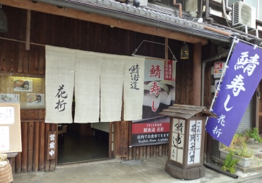 1913(大正2)年、京料理仕出屋として開業したことに始まる「鯖街道花折」。昭和59年、かつて若狭から鯖が運ばれた鯖街道筋に「鯖寿し」専門の工房を設立し、巧みに仕上げた京伝統の美味を全国に届けています。