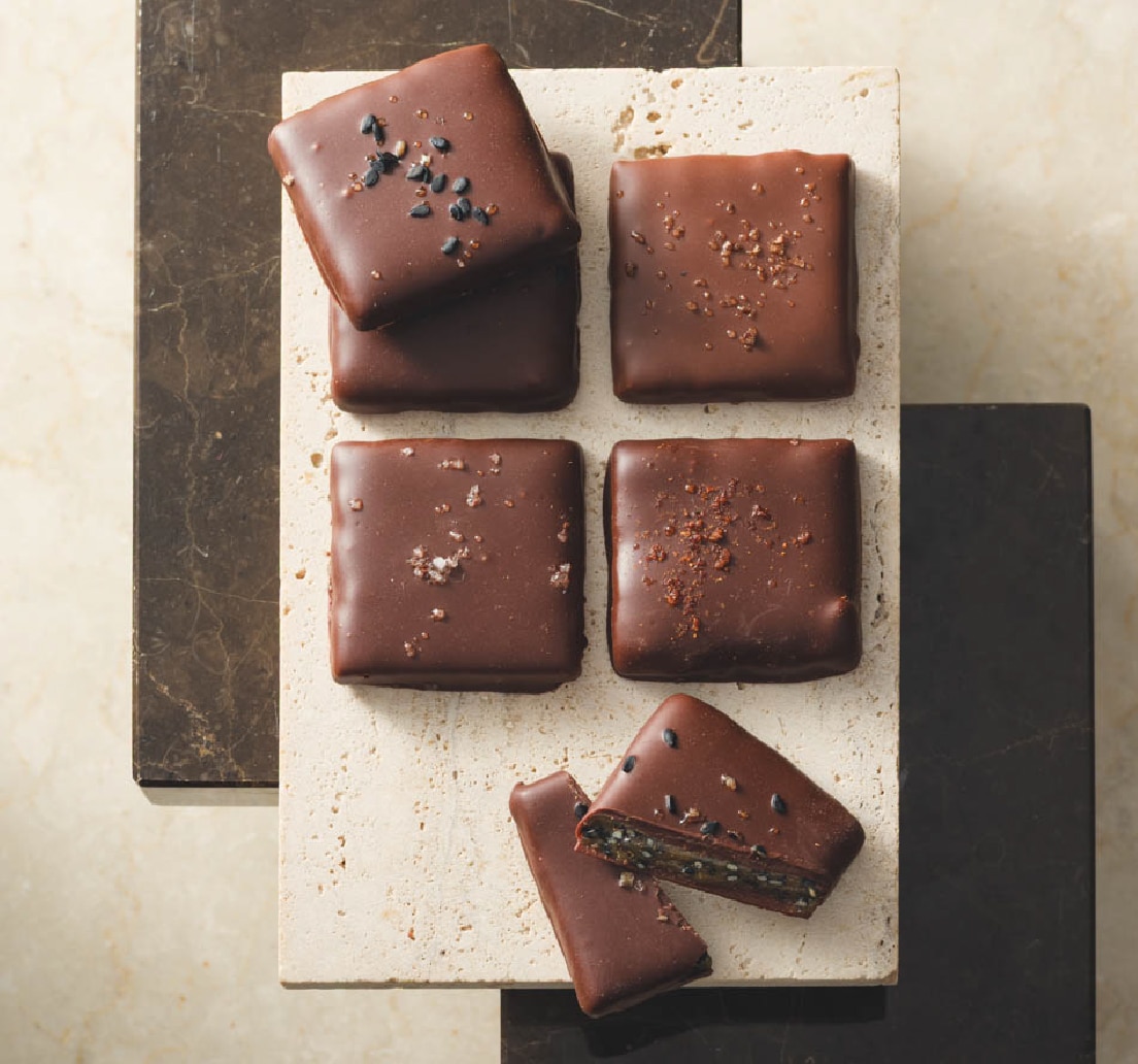 今回、高島屋のために作ったボックスは、サクサクとしたトフィーがベースです。それぞれ塩で仕上げられた4種類のフレーバーが入っており、塩の風味が一口ごとにチョコレートとキャラメルの風味を引き立てます。