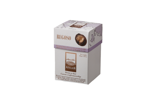 『マカダミア ドラジェ』はシルキーな舌ざわりのマカダミアナッツをローストし、力強い風味とライ麦パンを思わせる深みをもつカカオ分70%のニカラグア産(Rugoso)カカオを使用したチョコレートで包んだ一品。なめらかでありながら、カカオの存在感がしっかりと伝わる口当たりに仕上げました。