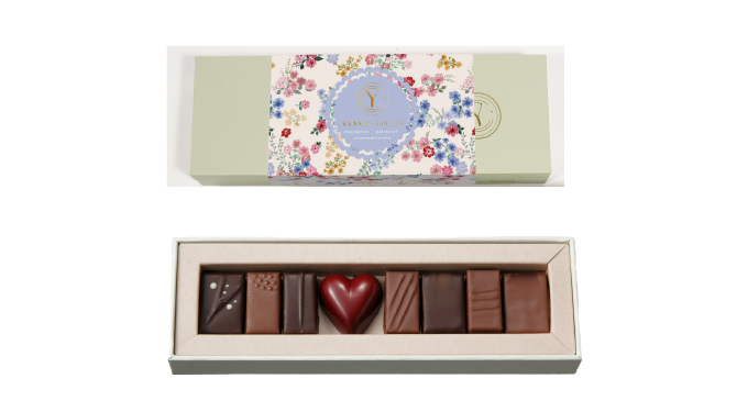また、小さい頃から大好きなとろとろのキャラメルや、祖母が作ってくれた香ばしいそば粉のガレットのような「プラリネ サラザン」、特別な時にだけ用意してくれたパッションフルーツのことを思い出しながら作ったガナッシュ。それに、日本のお客様にもファンの多いジャンドゥーヤノワゼットや、マルコナ種のアーモンド、ピーカンナッツにトンカ豆をきかせたボンボンなども詰め合わせました。