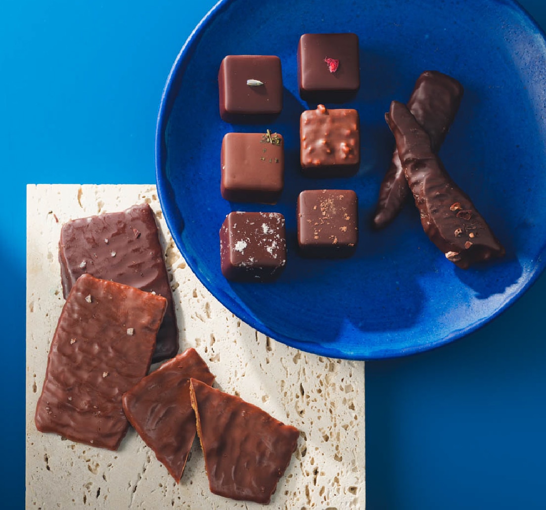 特におすすめしたいのは、太陽に照らされたラベンダー畑を思わせる「レモン&ジンジャーコンフィ×ラベンダープラリネ」と、プロヴァンスの庭に漂う穏やかなハーブの香りを感じさせる「ラズベリーコンフィ×ローズマリープラリネ」です。さらに、ココナッツ、セサミ、アーモンドのプラリネは、素材本来の風味を繊細なローストとバランスの取れた甘みで引き出しています。