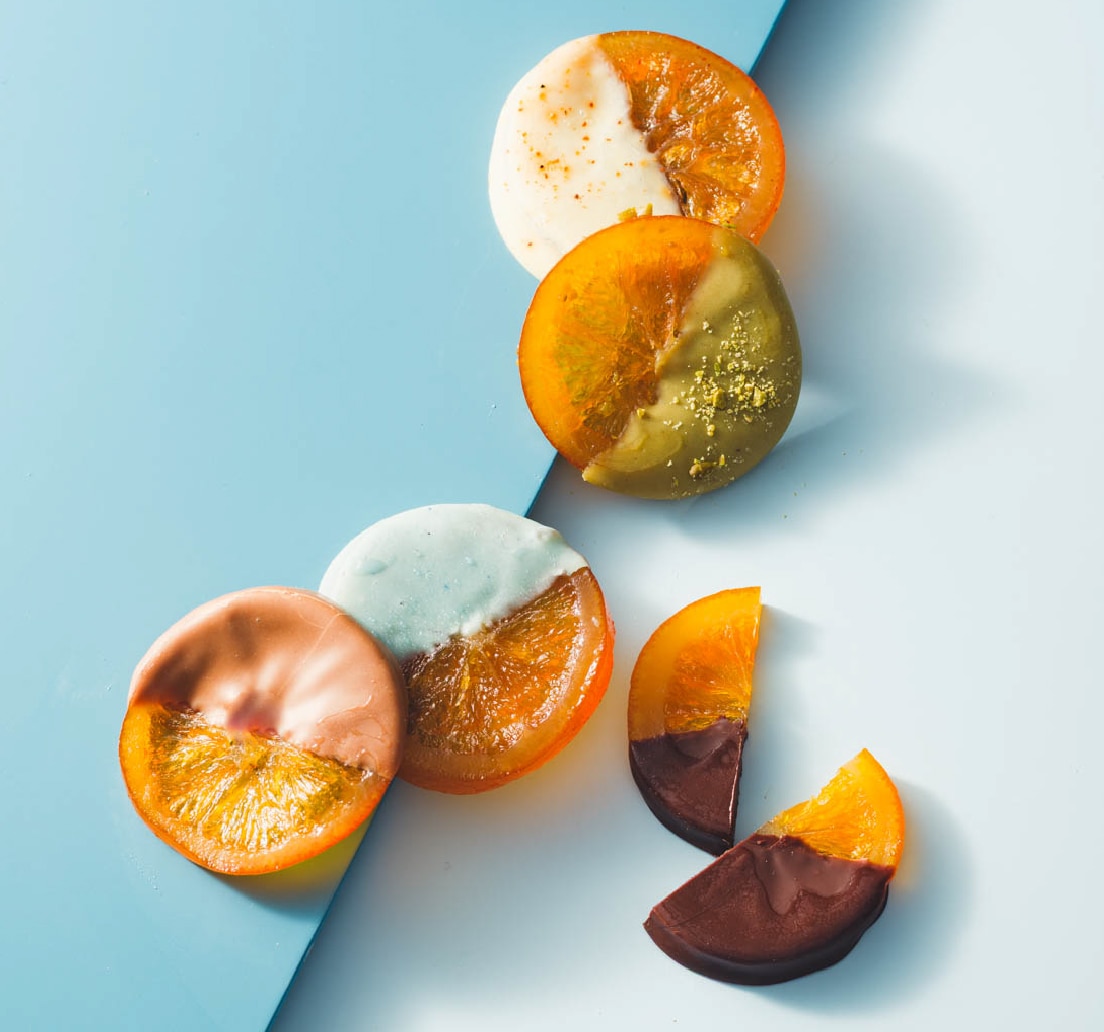 今回は、世界各国のオレンジを試食し、私がたいへん高い品質であると感じたイタリア・アグリモンタナ社のオレンジを使ったチョコレートです。美しい輝きとほんのりとした苦味、しっとりと柔らかな、他のオレンジにはない食感。それを、厳選したチョコレートでコーティングしました。5種のフレーバーの中でも特におすすめは、バスクの美しい田舎町・エスプレットの名産品である赤唐辛子。フランスで唯一原産地証明がされているこの赤唐辛子を、ホワイトチョコレートとあわせました。苦味、辛味、甘みをバランスよく引き出せている一枚だと思います。
