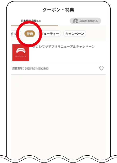 遷移しない場合は、アプリ内の「クーポン・特典」の「キャンペーン」に表示されている