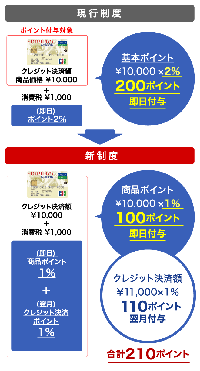 高島屋オンラインストア、高島屋「TBEAUT」、タカシマヤファッションスクエア、タカシマヤ通信販売、高島屋ローズキッチンでは、付与タイミングが異なります。 - ※5:「クレジット決済ポイント」は、高島屋の対象施設における当月1日から末日までのクレジットカードご利用総額(税込、100円未満切捨)に対して翌月初旬に付与、付与タイミングはずれる場合がございます。