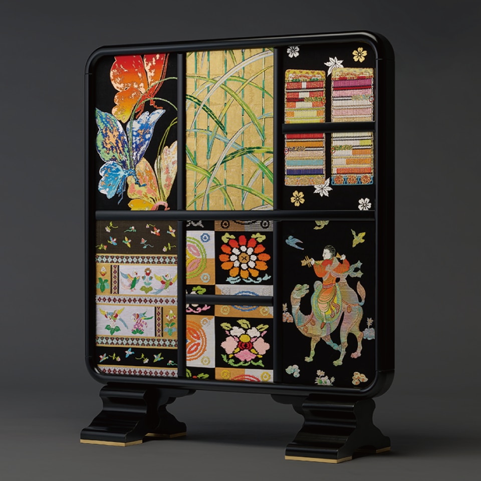 初代~三代龍村平藏の錦帯代表作を使用し、移動可能なアートファニチャーとして再定義した衝立。