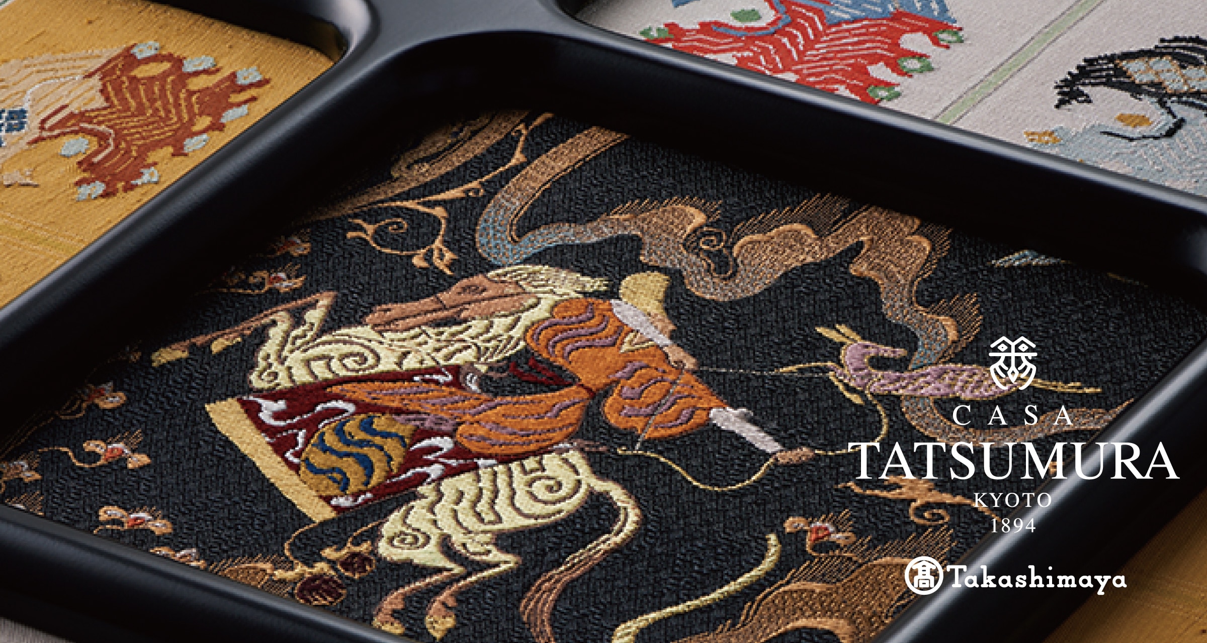 高島屋のオリジナルブランド〈龍村錦帯〉が2027年に100周年を迎えるのを機に、誕生した龍村美術織物のインテリアブランド〈CASA TATSUMURA〉。初代から五代へ130余年、各代の龍村平藏は「帯の意匠」制作にとらわれず、独自の美の探求テーマを持ち、美術織物の創作を行いました。初代平藏は正倉院宝物裂の復元を手がけ海外デザイナーをも魅了する唯一無二の技として評価され、1954年にはクリスチャン・ディオールの依頼を受け名物裂など 7点を制作。また後に日本画の大家となる若手図案家を積極的に採用。二代平蔵は日本の国風文化、三代平藏はシルクロード由来の工芸品、四代平藏は和洋融合南蛮美術とガラス工芸を表現しました。そして 2024年に五代平藏を襲名した現社長龍村育氏は「和の躍動 和の解放」をコンセプトに、織物の領域を呉服に限定せず、生活空間に応用・転換を目指し、〈CASA TATSUMURA〉ブランドを始動します。