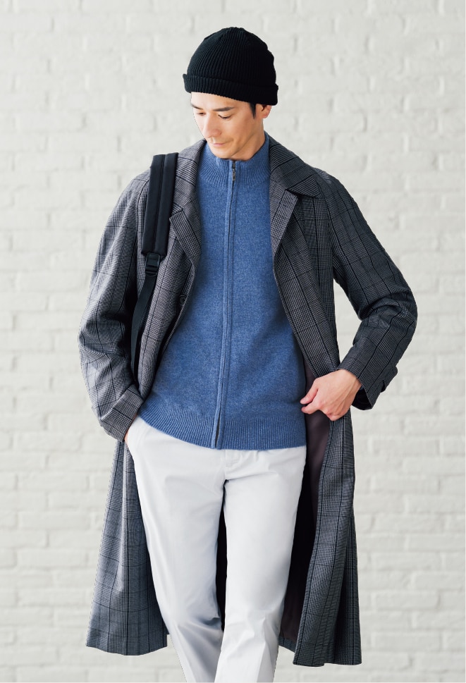 昨年のヒットアイテム、フルジップセーターに新色のブラックとブルーグレーが登場。ハーフジップセーターもボリュームが出すぎず、インナー使いもできる、着回しやすいアイテムです。