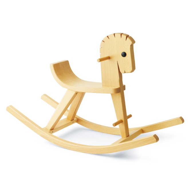 “ぺーター”を愛称にもつこの木馬は、ドイツの老舗木製玩具メーカー、ケラー社で1954年に誕生したロングセラーの名品。人間工学に基づいた曲線のそりと座面が子どもの体に自然にフィットし、先端に施されたカットで元気に揺らしても倒れにくい作り。耐久性に優れたブナ材ながら軽く扱いやすいのも嬉しい。美しい佇まいでインテリアにも映え、信頼性も確かな一台。