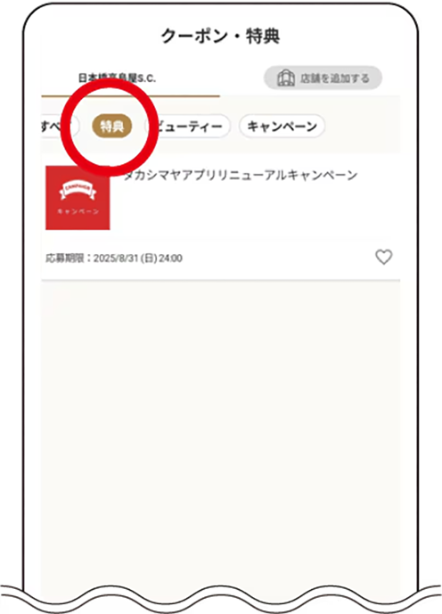 ご来店の際は、「タカシマヤアプリのご当選通知・クーポン・特典画面を操作できるスマートフォン」をお持ちください。