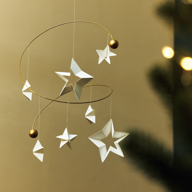 動く彫刻と称されるデンマークモビール。伝統的ペーパークラフトが老舗ブランドのフレンステッド モビールによってモダンなスタイルに昇華した。正確なバランスポイントのもと熟練の技で制作された各パーツは自由に動き、光と影の美しい陰影を描き出す。