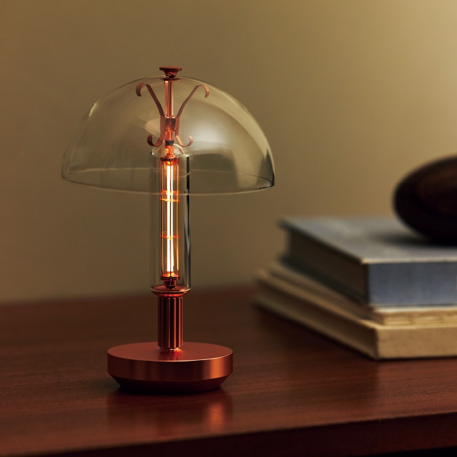 水中撮影機材の開発製造を技術的背景に、独自の製品展開をしている日本のポータブル照明ブランド〈アンビエンテック〉。バルカロール60は、半球型ガラスが光を包み込み、光の輪郭を柔らかに描く。中世の静物画を思わせる静謐な存在感と暮らしに寄り添う光のコントラストが上質なアクセントに。大人のための至福の時間をやさしく照らす。