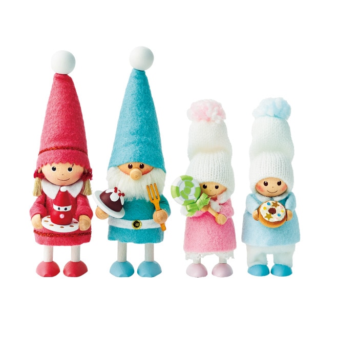 子どもや家を守り、サンタクロースを助けて、幸せを運ぶ存在と伝えられる北欧の妖精たちをかたどった木製人形、ノルディカニッセ。職人がひとつひとつ丁寧に仕上げ、それぞれに異なる表情が宿る。2025年の高島屋限定版は、甘いスウィーツを手にした4人のニッセ達。パステルの彩りが冬のインテリアにホリデーのときめきを添える。