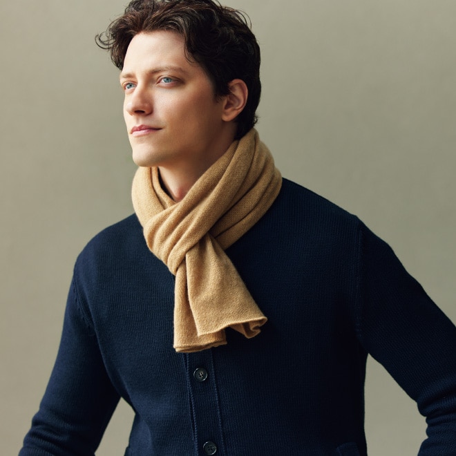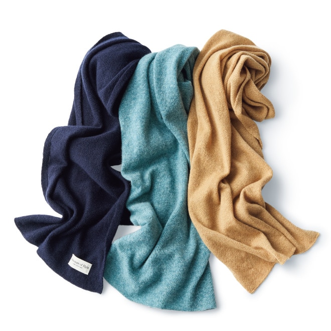 ニットの産地として知られる山形県寒河江市で作られた、高品質のニットでファンの多い「バトナー」。ウールでありながらコットンのようにチクチクしない肌触りが魅力のショートマフラーと、フィンガーレス手袋は、ブランドの代名詞となっている編み地を使用。