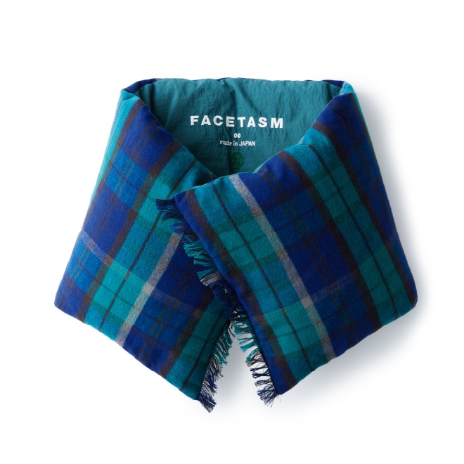 顔まわりを包み込むボリューム感が人気のダウン入りマフラーを復刻した高島屋別注アイテム。フカフカの柔らかさと軽やかな着け心地で、ユニセックスに楽しめるFACETASMのオリジナルチェック柄がアクセント。内側にさりげなくロゴ刺繍を施し、特別感を演出している。