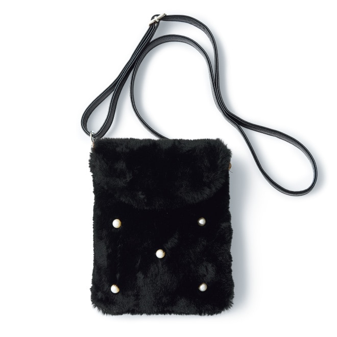 フカフカのエコファーのバッグは、大人のバッグをキッズサイズにリモデル。スマートフォンなどが入るサイズ感で、子どもも大人も楽しめる。寒い季節のキュートなアクセントに。