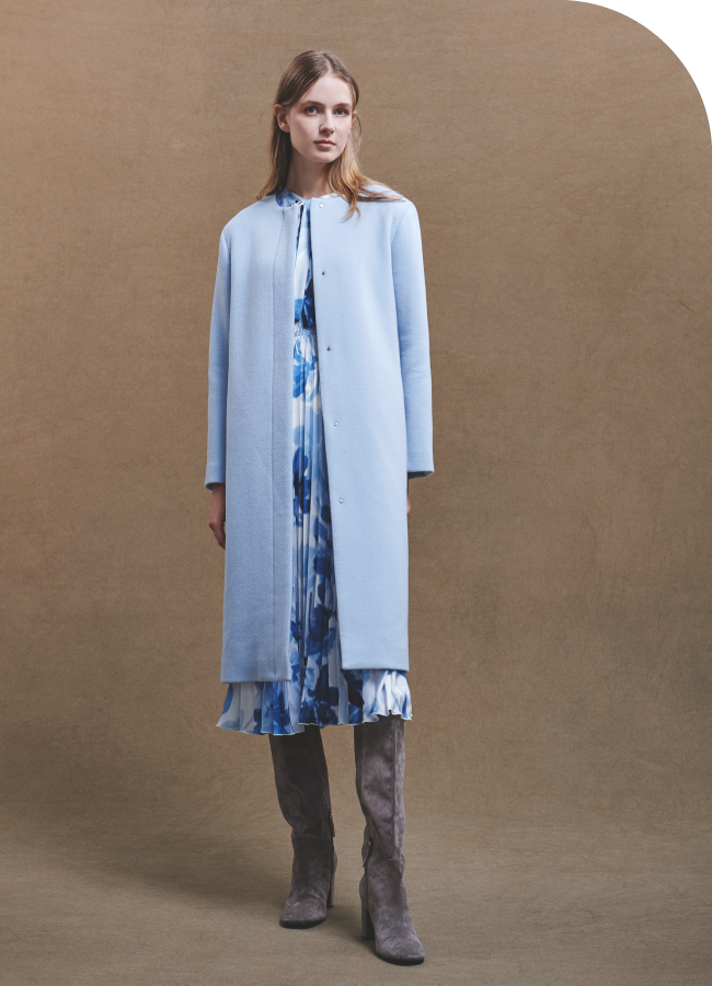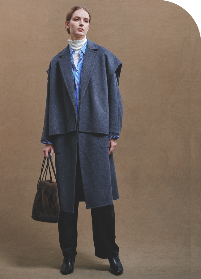 自由に楽しめる軽やかなコート。ケープ風のデザインが新鮮な、