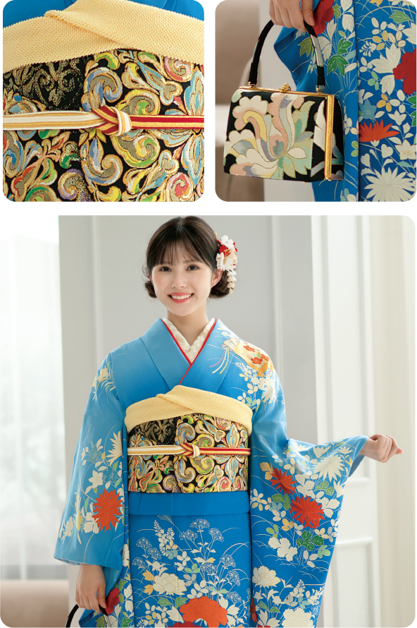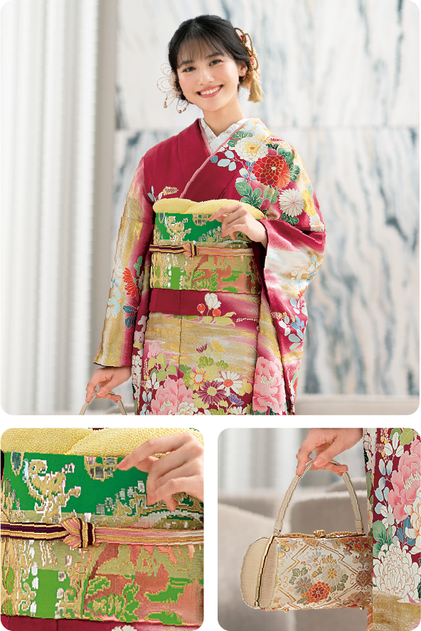 - ※WEBサイトに記載された振袖と帯の価格は、標準のお仕立ての場合に適用になります。裏地や帯芯の変更、特殊なお仕立ての場合は別料金になります。