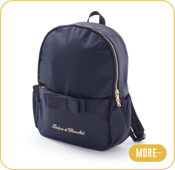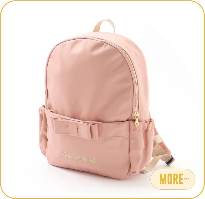 真ん中の大きいグログランリボンモチーフがポイント。内側や外側、サイドにもポケット付き。