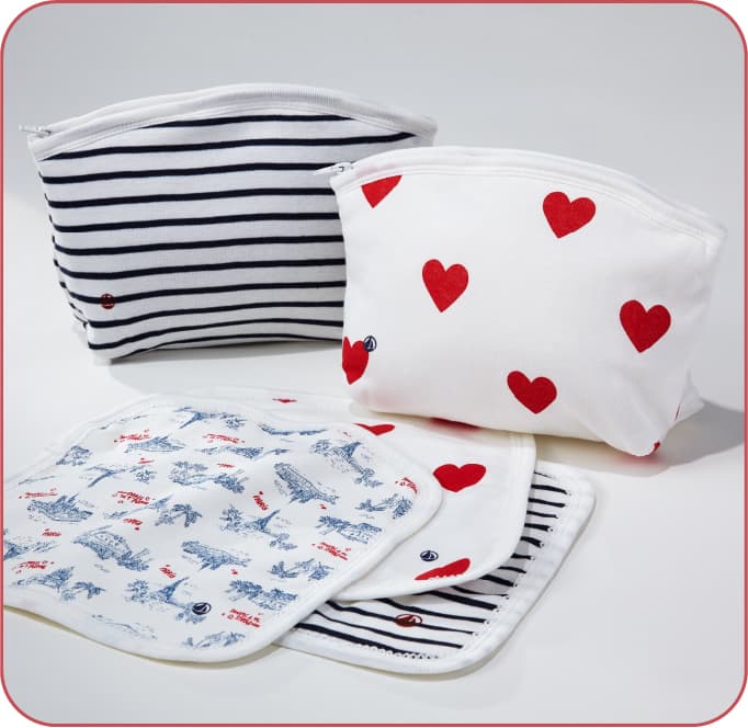 やわらかな肌触りのプリントポーチと、ハンカチ。ギフトにもおすすめの人気アイテム。