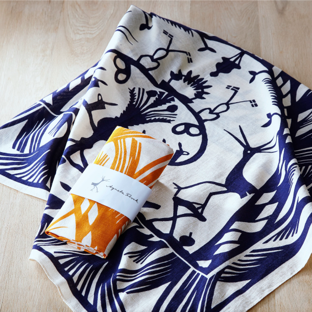 (約95×95cm/オレンジ・藍)各4,620円スウェーデンの織物・切り絵作家、アグネータ・フロックの作品をモチーフにデザインした風呂敷。