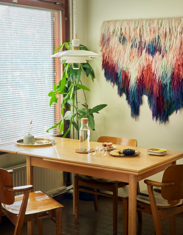 北欧の基礎学校(小中一貫校)には、伝統的手工芸について学ぶ「スロイド(Slöjd)」という授業があり、実際に大きな機織り機で織物づくりを行うこともあります。また、大人になってから手工芸学校に通い、学び直すこともできます。誰にでも開かれた、手仕事や自然素材に触れられるこうした経験が、北欧のテキスタイルを未来へとつないでいくのです。