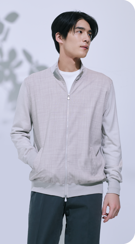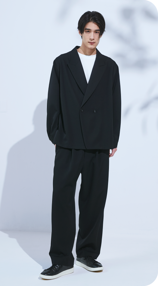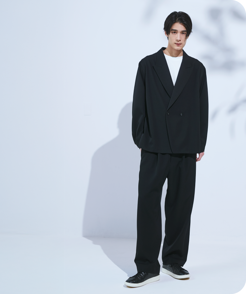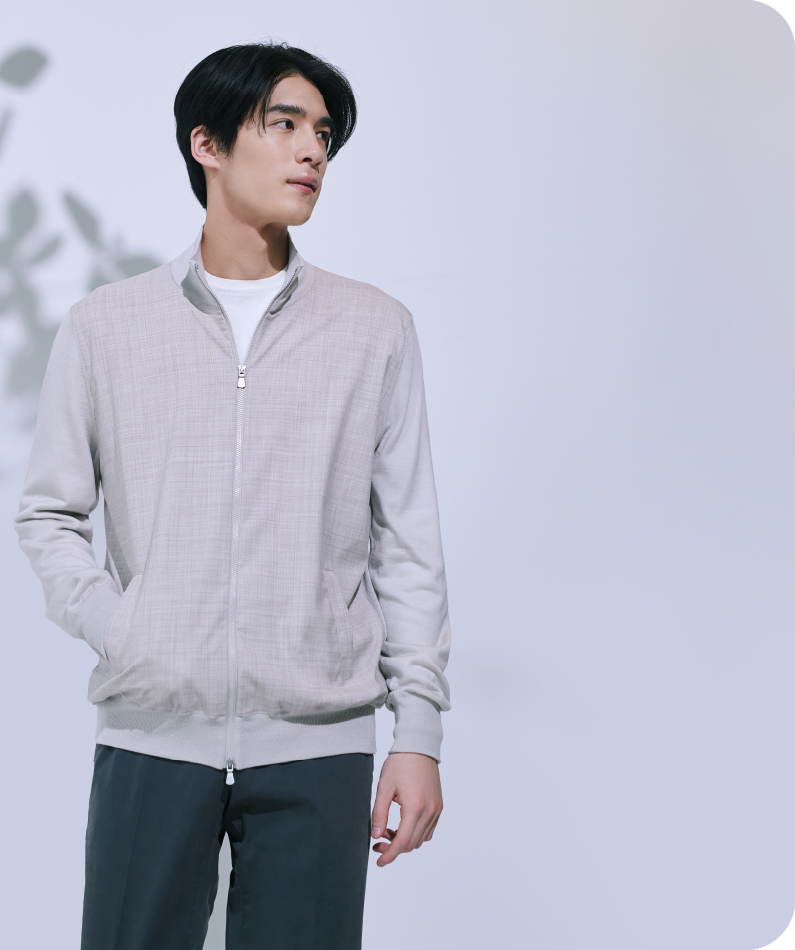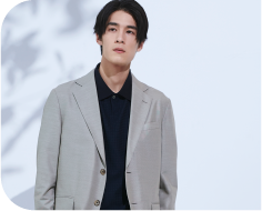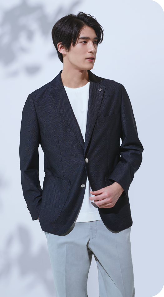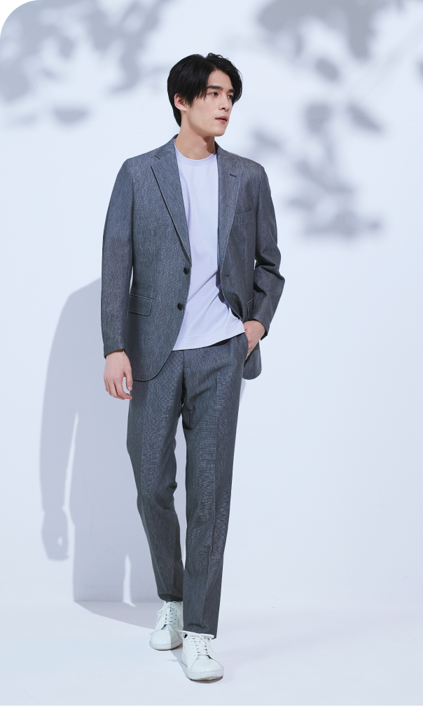 上質で滑らかな触り心地でありながら、シワになりにくく通気性に優れているセットアップ。出張にも最適な一着で夏まで長く着用できます。インナーは春らしいカラーのニットでアクセントに。