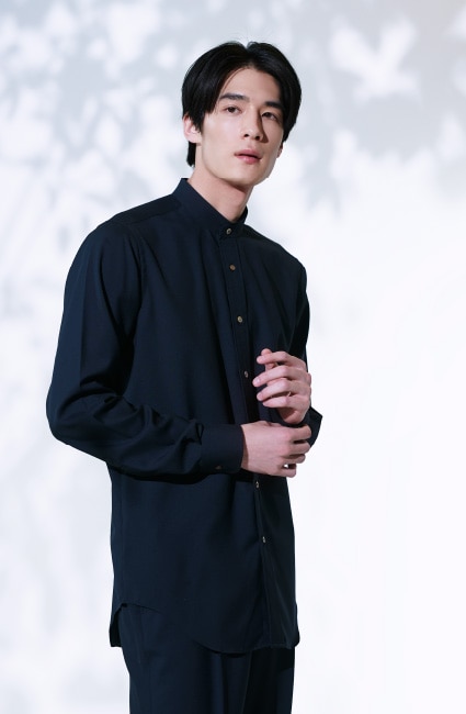 肌に近いシャツだからこそ、天然素材の心地よさが際立つ。ウール100%でありながら洗える、春にぴったりのバンドカラーシャツ。