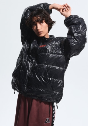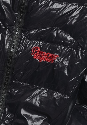 フロントに施したハート型のキルティングはブランドのアイコン。スタイリング次第でキュートにもクールにも着用できるアウターで、自分らしい着こなしを楽しんで。