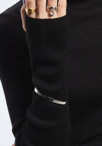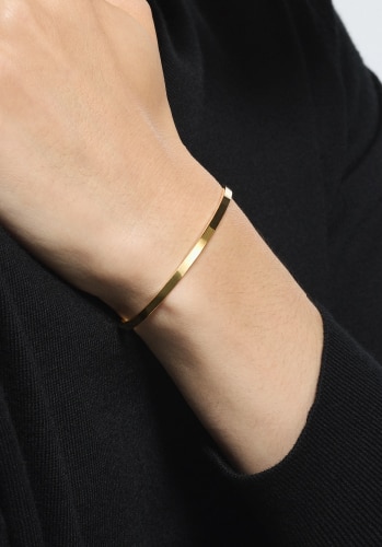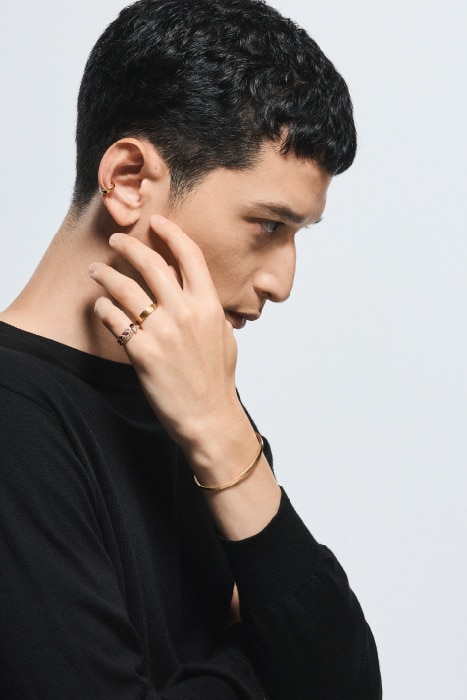 スタイルを選ばずに合わせられるシンプルなデザイン。時計やブレスレットとのレイヤードも楽しんで。