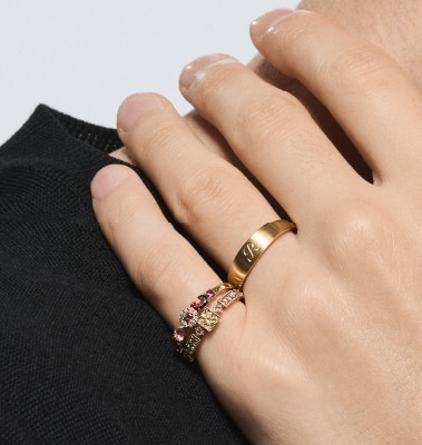 異なる形、色、大きさの石が花冠のように連なるサンクルールリング。お好きな石を選んで、ご自身の色合いを楽しめます。