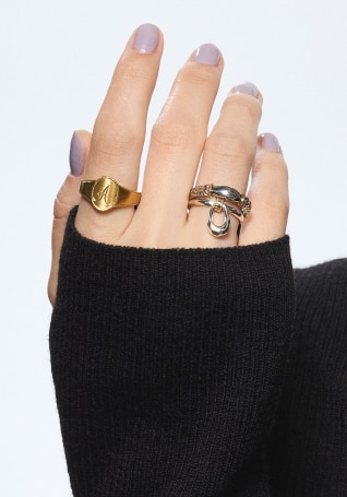 ユニセックス感覚のスタイリッシュなデザインリング。イニシャルや図案を刻印でき、パーソナルなおしゃれを楽しめます。