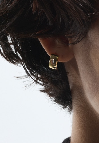個性を放つピアス。シンプルなスクエア型のフォルムは、単品でも他のピアスとともにレイヤードしてもOK。