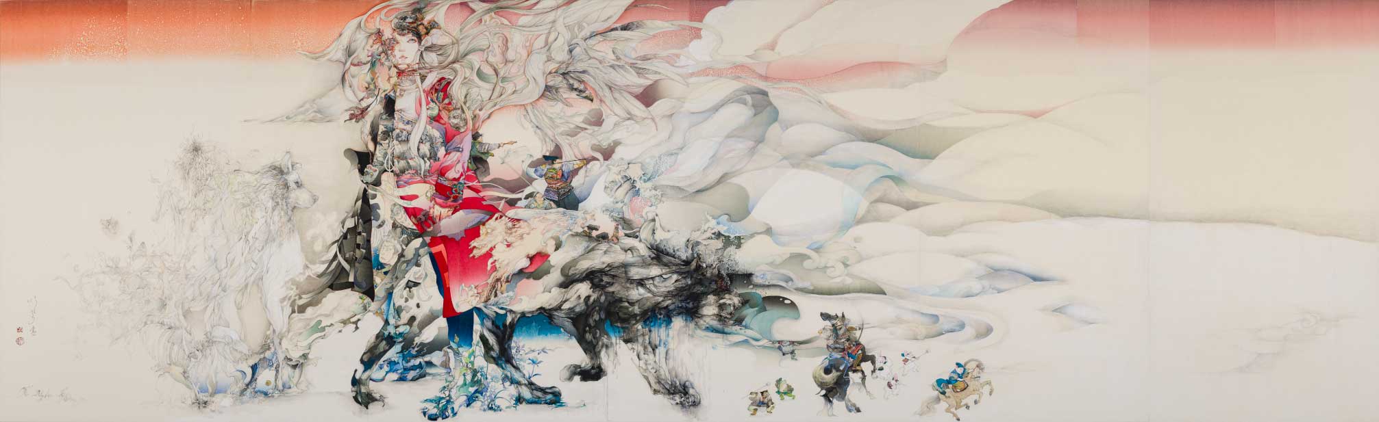 新作屏風《夢幻対峙之図》を一双屏風として初めて公開いたします。