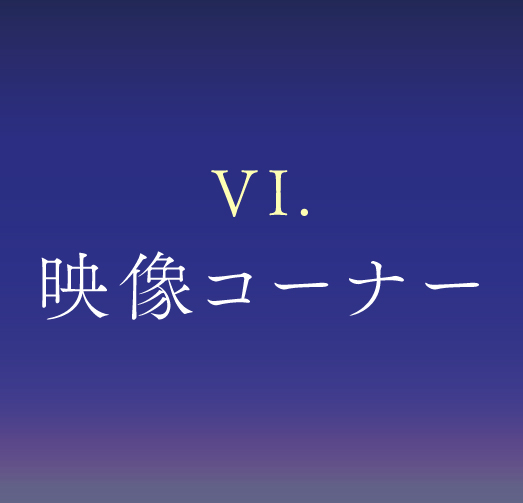 II章で紹介した六曲一双の大型屏風《L'Alpha et l'Oméga(始まりと終わり)》の右隻に描かれた馬に乗って疾走する戦士をベースに制作された映像を大画面で上映します。入江の描いたパーツそれぞれが動き出し、見る人を異次元空間へと導きます。