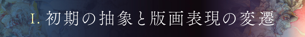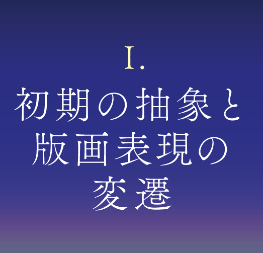 現在のミクストメディア作品を支える、初期の抽象表現や一版多色刷りなどの高度な版画技術に焦点を当てます。 愛用の道具類や版画のモチーフも参考展示。 また本年初挑戦した華やかなリトグラフ作品も原画とともに披露します。