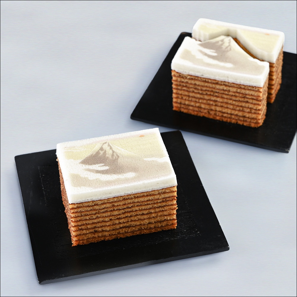 山種美術館が所蔵する、横山大観の「富士山」を、黄な粉香るバウムクーヘンとパッケージに表現した高島屋オリジナル商品です。